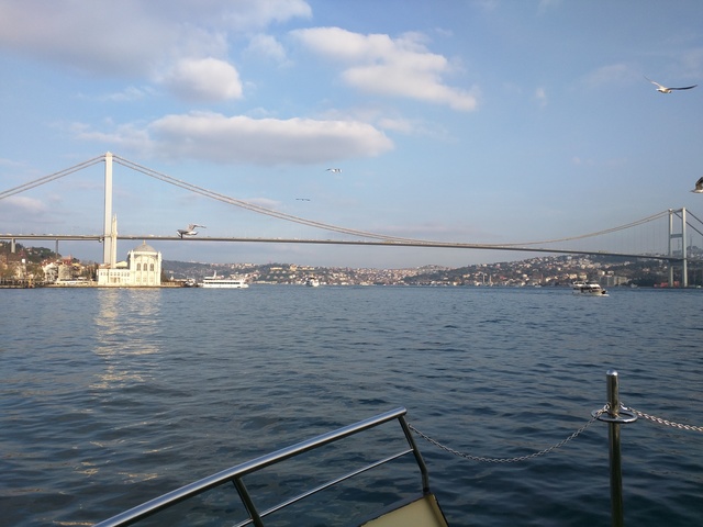 In our first week we went on a cruise on the Bosphorous river. We tried a strange dessert made of chicken breast soaked in milk. It had the consistency of bread dough and was nice and sweet.